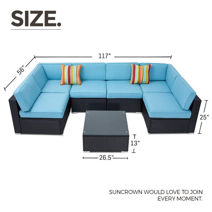 Winston Porter Rosenblum Outdoor 7 Piece Black Wicker Full Back
